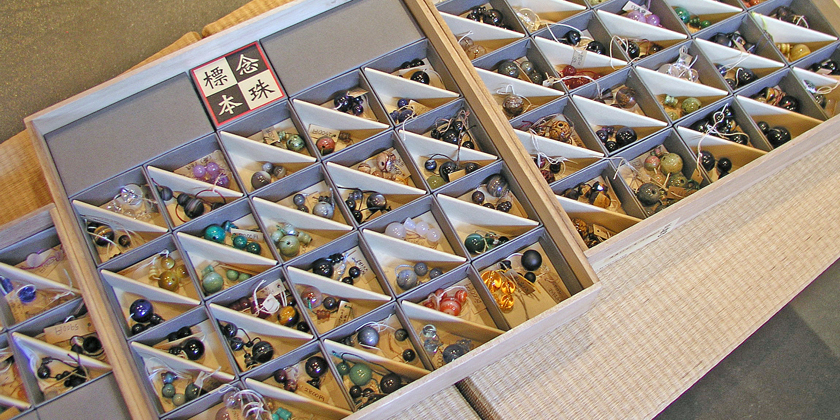 主玉(おもだま)について、店頭の販売商品の中から、ご自身のイメージに近い素材、大きさのものをお探し下さい。イメージに近い主玉をご準備し、お客様のご要望に沿ったオーダー念珠に仕上げてまいります。
