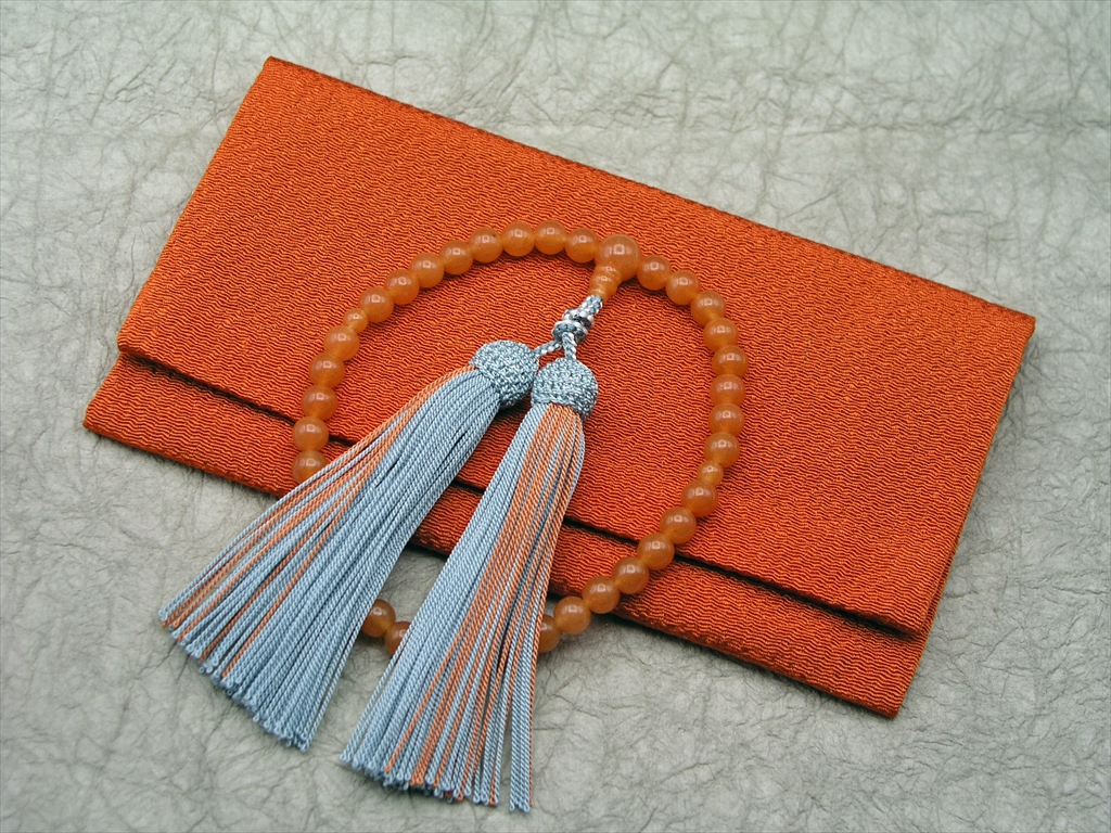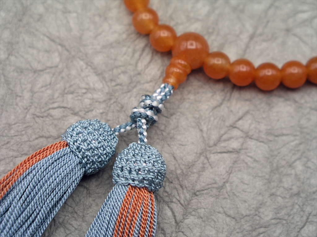 【十連十色念珠】2.オレンジアベンチュリン共仕立飾り結び正絹彩り房