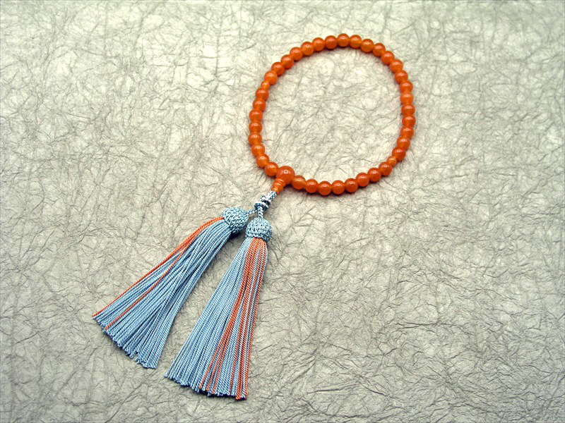 ビタミンカラーのオレンジが華やかなお念珠です。水色とオレンジの二色房で、和モダンに仕立てました。