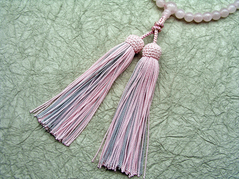 【十連十色念珠】3.ローズクォーツ共仕立飾り結び正絹彩り房