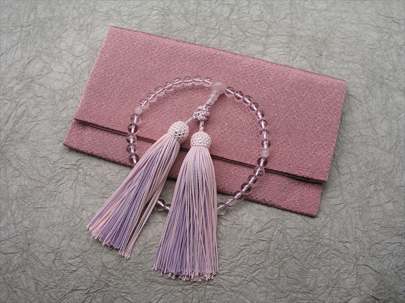 肌になじむ優しい桜色のお念珠です。