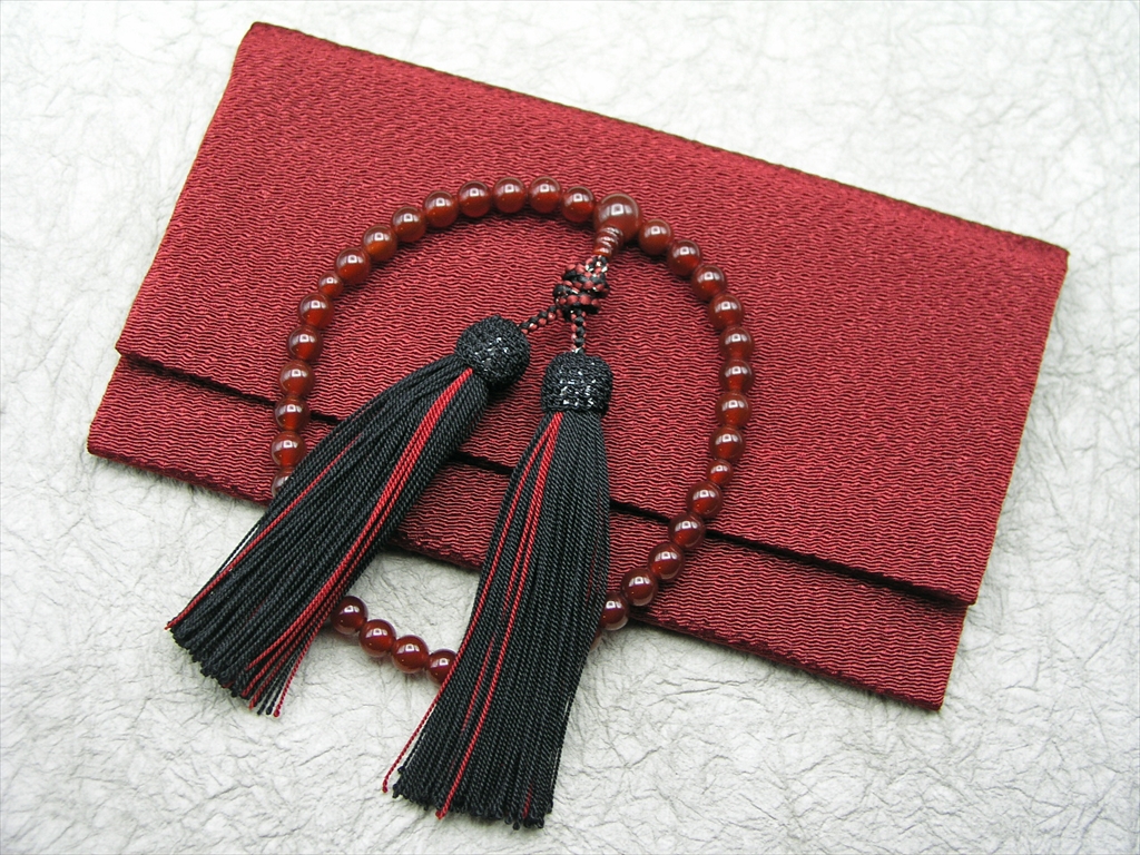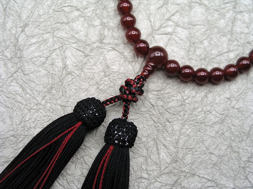 【十連十色念珠】5.赤瑪瑙共仕立飾り結び正絹彩り房