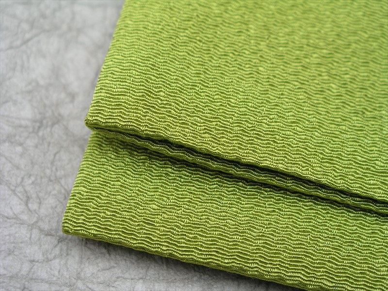強い黄緑で、稲の苗の色です。明るく落ち着きがあり、やや黒みがあります。
