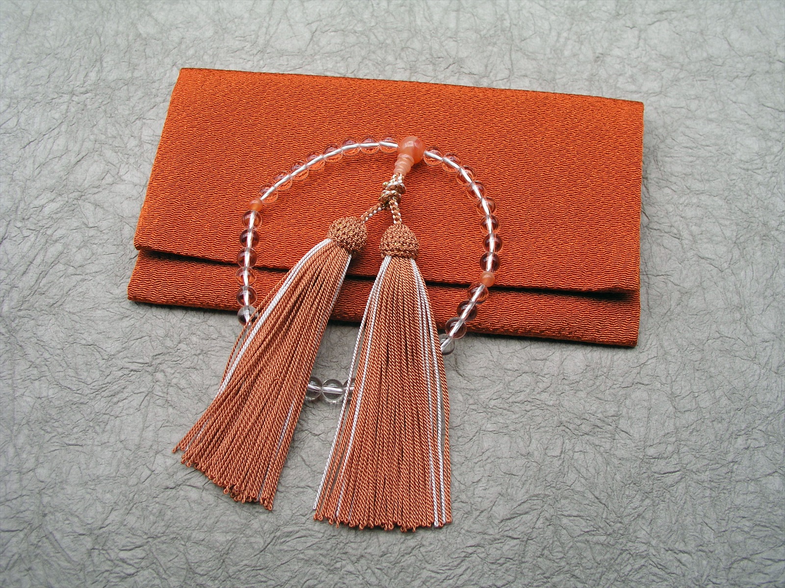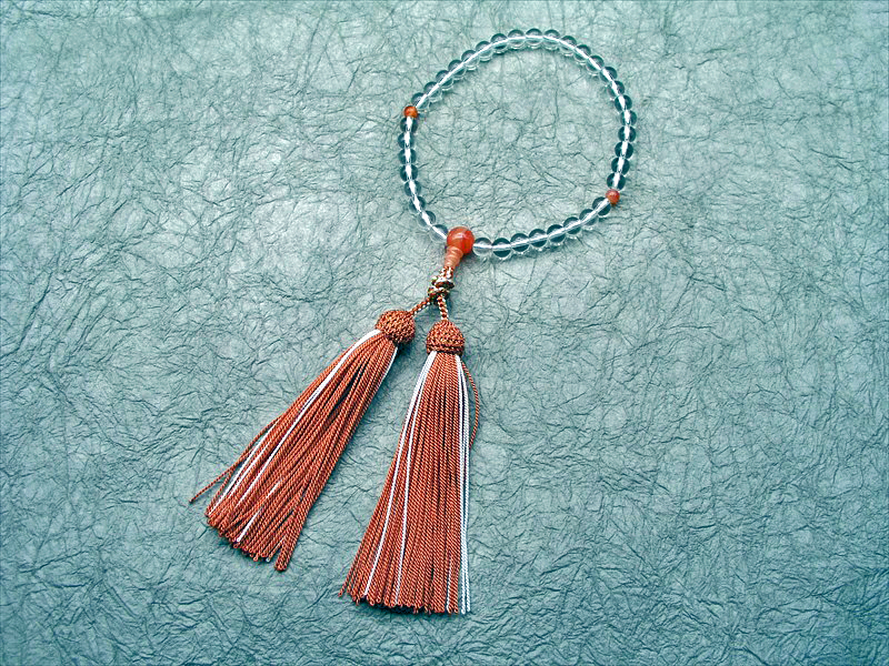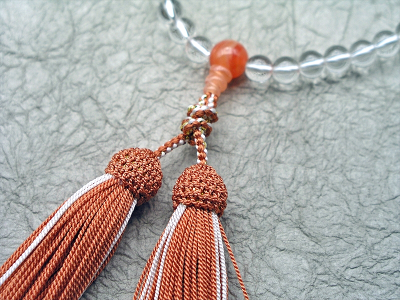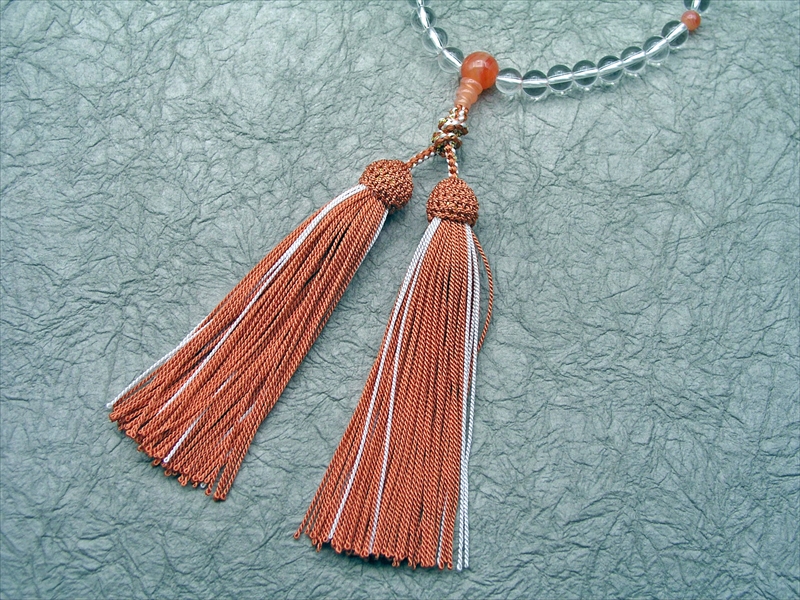 【誕生石念珠・葉月(8月)】 水晶オレン瑪瑙瑪瑙仕立飾り結び正絹彩り房